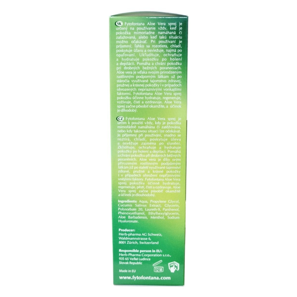 A Fytofontana ALOE VERA SPRAY ajánlott a bőr mindennapos ápolására, valamint erős igénybevétel után.