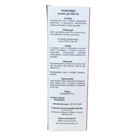 A Psoratinex tisztító gél külsőleg alkalmazandó gyógyszernek nem minősülő gyógyhatású készítmény, mely hatóanyagai a szénkátrány oldat és a szalicilsav. Ezek hatását szakirodalmi adatok igazolják. A gél a pikkelysömör enyhe és középsúlyos, krónikus (stabil) formájában a bőr tüneteinek – így az erythema, beszűrődés, parakeratosis és viszketés – csökkentésére szolgál, valamint a száraz, hámló, pikkelyes bőr ápolására. A termék egyensúlyban tartja a bőrt, előkészítve a további kezeléseket, mint a kenőcs és a kondicionáló olaj használatát. A használat során figyelembe kell venni a fotoszenzibilizáló hatást, ezért a fényvédelmi előírásokat be kell tartani. A termék biztonságos tárolása legfeljebb 25°C-on ajánlott, továbbá fontos a gyermekektől való elzárás. A részletes használati utasítás a mellékelt betegtájékoztatóban található.
