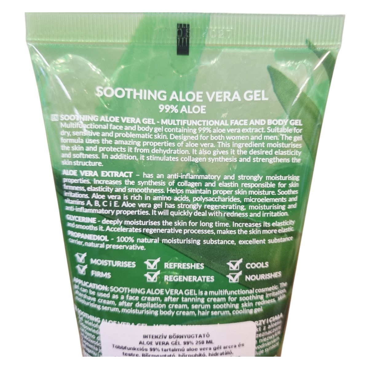 A 99%-os aloe vera tartalmú nyugtató gél intenzíven hidratálhatja és puhíthatja a bőrt, segíthet csökkenteni az irritációt, valamint elősegítheti a regenerációt. Testre és arcra egyaránt alkalmas.