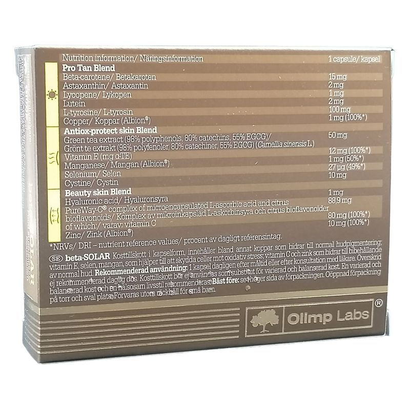 Az Olimp Beta Solar hármas mátrixa komplex módon védi és táplálja bőrünk sejtjeit, valamint harcol az öregedés jelei ellen! Ideális napozáshoz, szoláriumozáshoz a bőr barnulási képességének fokozásához, az oxidatív stressz elleni maximális védelem mellett! Továbbá ideális testépítőknek „beszáradt” versenyidőszakban a papírvékony bőr védelmére és a bőr barnítására.