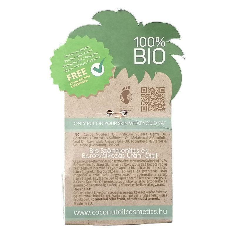 A kókusz-, a sáfrányos szeklice- és a búzacsíraolaj értékes zsírsavaival pótolja a nedvességet, és újjáépíti a lipid gátat, regenerálja a sérült hámréteget. Az olajok baktérium- és gombaölő hatása megelőzi a szőrtüszők és a hámréteg begyulladását borotválkozás, epilálás és gyantázás után. Gyengéd fertőtlenítő képességét a szűz kókuszolaj magas laurinsav-tartalmának és a 100%-os tisztaságú teafa illóolajnak köszönheti, végül a levendula illóolaj megnyugtatja a begyulladt és irritált bőrt. Mennyiség: 50 ml. 100% bio. Ehető minőségű. NaTrue által minősített. Vegán. Unisex. Környezettudatos csomagolás.