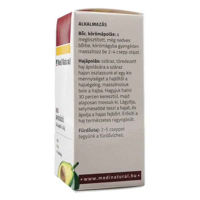 Az avokádó bőrápoló olaj A-, B-, és D-vitaminokban gazdag tápláló olaj, amely jól beszívódik a bőrbe és a hajba egyaránt. Ideális választás száraz, időjárás által megviselt, ráncos, érzékeny bőrre. Kiváló regeneráló, visszaadja a bőr rugalmasságát, elősegíti a bőr sejtjeinek megújulását, ezért ekcémás, gyulladásra hajlamos bőr elsőrendű ápoló olaja. Hajregeneráló és hajerősítő, szinte újjáéleszti a száraz, töredezett hajat. A fejbőrbe masszírozva serkenti a hajnövekedést.