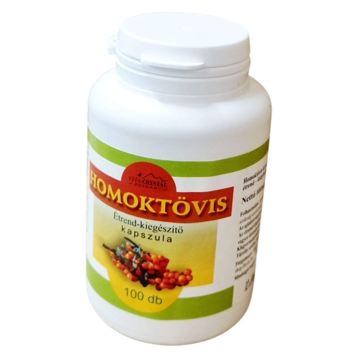 A Vita Crystal Homoktövis étend-kiegészítő kapszula egy polifenollal gazdagított termék, amely homoktövis kivonatot és Flavin 7 bioflavonoid komplexet tartalmaz. A bioflavonoid komplex többféle gyümölcshéj szárítmányából áll, amelyek hozzájárulhatnak az antioxidáns hatás támogatásához. A termék kapszulás formában készül, HPMC bevonattal, és ajánlott napi 1-2 kapszula bevitele vízzel. A termék teljes nettó tömege 62 g, egy doboz 100 kapszulát tartalmaz, egyenként 620 mg-os kiszerelésben. Az étrend-kiegészítő használata mellett javasolt a vegyes és kiegyensúlyozott étrend, valamint az egészséges életmód fenntartása.