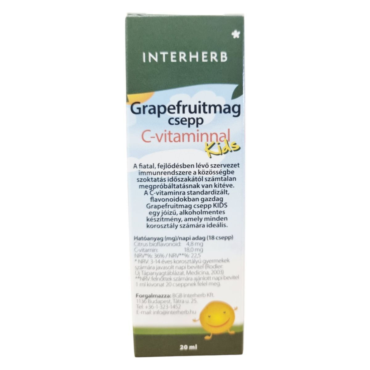 A Grapefruitmag csepp C-vitaminnal Kids egy olyan étrend-kiegészítő, amelyet kifejezetten a fiatal, fejlődésben lévő szervezet számára fejlesztettek ki. A termék citrus bioflavonoidokat és C-vitamint tartalmazhat, amelyek hozzájárulhatnak az immunrendszer támogatásához. A készítmény jóízű és alkoholmentes, így ideális lehet minden korosztály számára. A termék használata során fontos, hogy mindig hígítva alkalmazzuk, mivel hígítatlanul nyálkahártyairritációt okozhat. A termék forgalmazója a BGB Interherb Kft., és az OETI notifikációs száma 11371/2012.