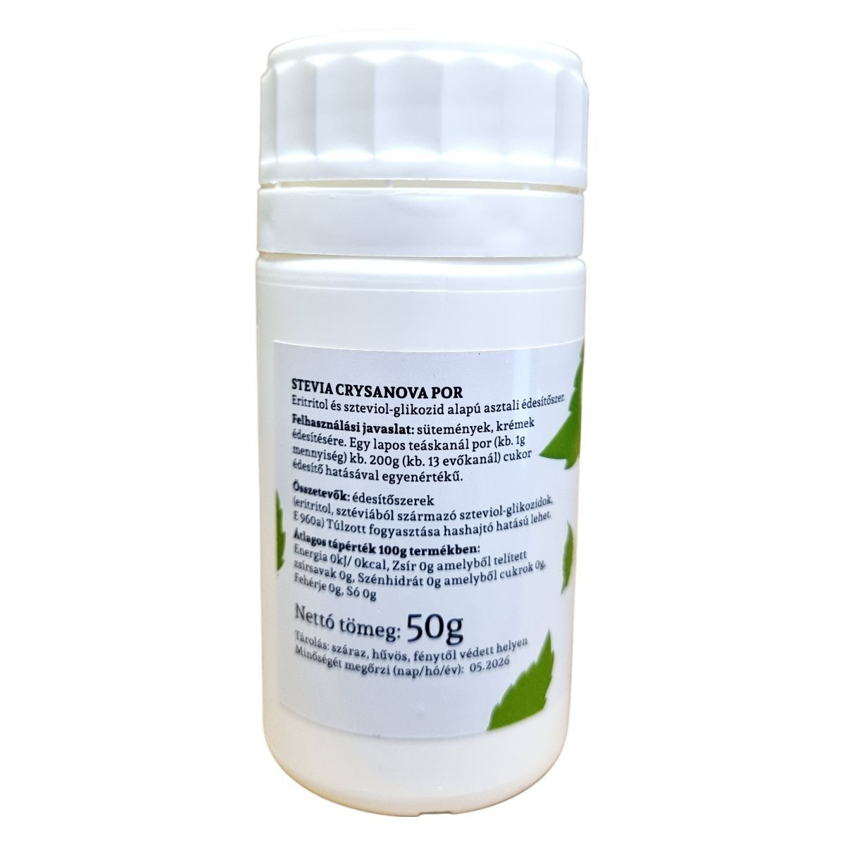 Az ALMITAS Stevia Crysanova egy természetes édesítőszer, amely eritritol és szteviol-glikozid alapú. Kiválóan alkalmas sütemények és krémek édesítésére, mivel egy lapos teáskanál por körülbelül 200g cukor édesítő hatásával egyenértékű. A termék bio és vegán étrendbe is beilleszthető, és kalóriamentes, így ideális választás fogyókúrákhoz és egészségtudatos életmódhoz. Fontos azonban figyelni a mértékletes fogyasztásra, mivel túlzott bevitele hashajtó hatású lehet. A terméket száraz, hűvös, fénytől védett helyen ajánlott tárolni.