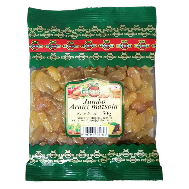 A Naturfood jumbo arany mazsola 150g egy ízletes és tápláló snack, amely a szőlő természetes édességét és tápanyagtartalmát hordozza magában. Az aszalt szőlő, más néven mazsola, nem csupán finom, hanem gazdag vitaminokban és ásványi anyagokban is. A jumbo méretű mazsolák különösen lédúsak és édesek, így ideális választás lehet mindazok számára, akik szeretik a gyümölcsök természetes ízét. A termék előállítása során a szőlőszemeket gondosan válogatják, majd aszalják, hogy megőrizzék azok tápanyagait és ízét. A mazsola nemcsak önálló snackként fogyasztható, hanem különféle ételekhez is remekül illik, például salátákhoz, süteményekhez vagy müzlikhez. A napraforgó olaj és az antioxidáns (kén-dioxid) hozzáadása segít megőrizni a mazsolák frissességét és ízét, így hosszabb ideig élvezhetjük ezt a finomságot.
