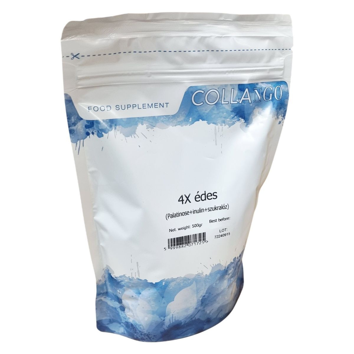 A COLLANGO termék 500 grammos kiszerelésben kapható táplálékkiegészítő, amely palatinózt, inulint és szukralózt tartalmaz. Az összetevők közül a palatinóz egy lassan felszívódó szénhidrát, az inulin oldható rost forrás cikóriából, míg a szukralóz egy kalóriamentes édesítőszer. Az allergén figyelmeztetés szerint a termék olyan üzemben készül, ahol tej, tojás, szója, glutén, mogyoró, hal és rákfélék is feldolgozásra kerülnek. A tápanyag-összetétel alapján a termék energiaértéke 371 kcal 100 grammonként, zsiradékot, cukrot és fehérjét nem tartalmaz, viszont jelentős rosttartalommal rendelkezik. A COLLANGO a Hofood Kft. forgalmazásában érhető el.