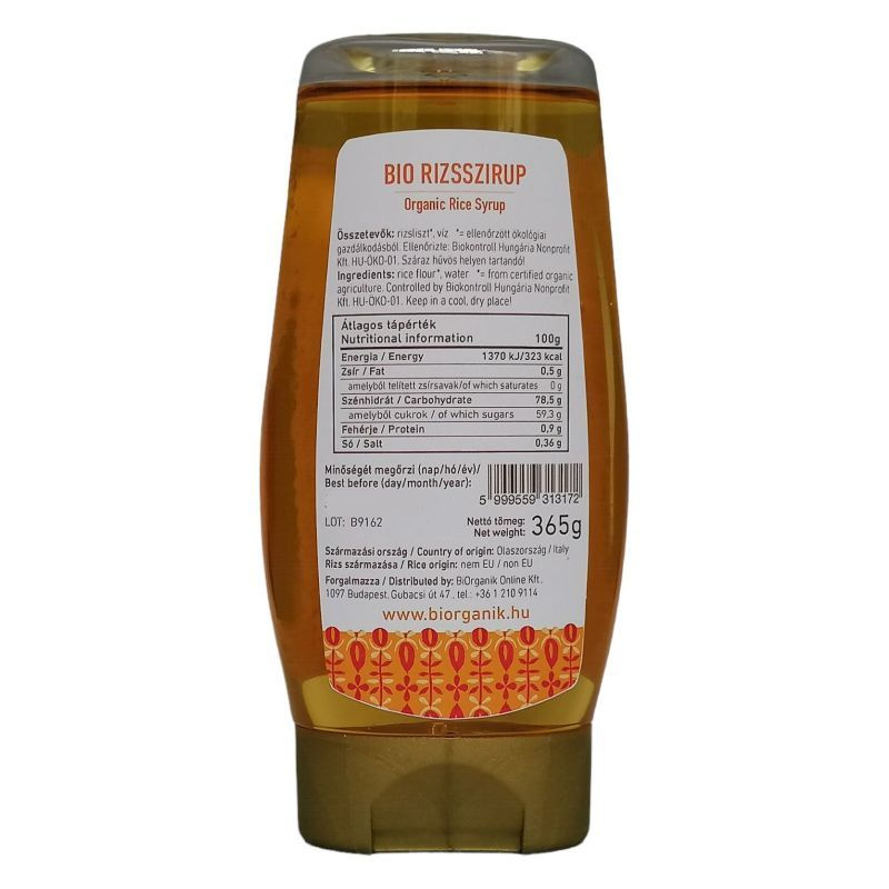 Biorganik bio rizs szirup cukor és méz helyettesítésére. Édesítésre, keksz, müzli szelet, sütemény, szószok, joghurtok, szója alapú tej és desszert, fagylaltok, szörpök, italok készítésre. Jó tudni: a növényi szirupok az emberi szervezet számára a legkedvezőbb édesítőszerek.