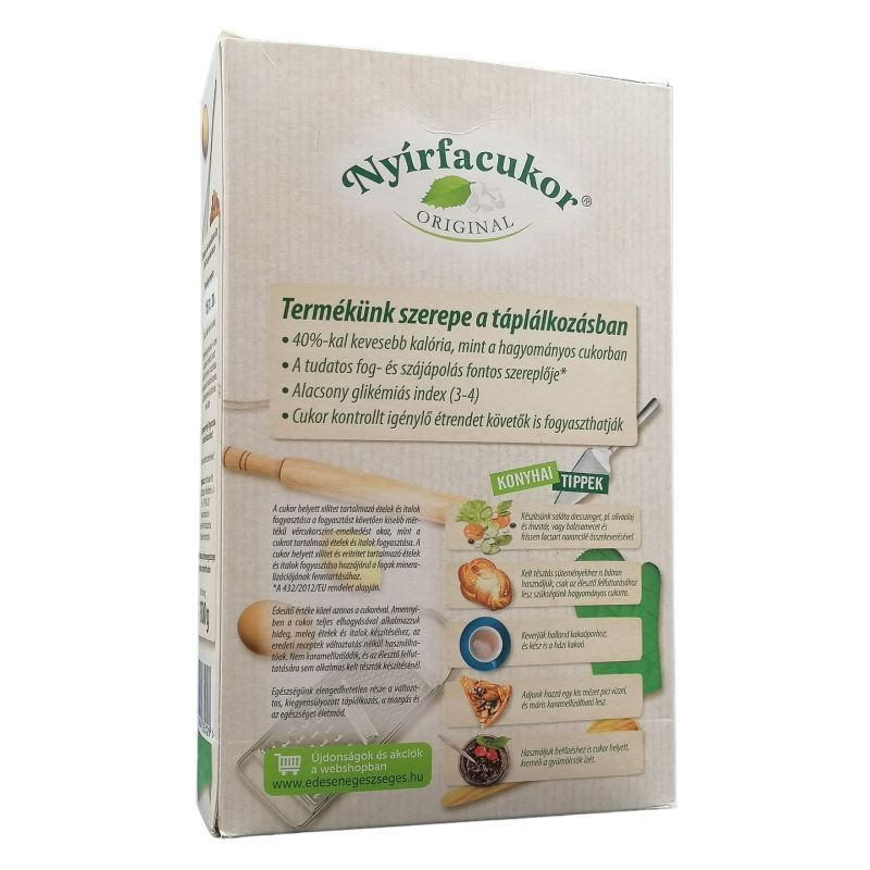 A nyírfacukor plussz egy korszerű cukorhelyettesítő megoldás, amely a hagyományos nyírfacukor terméknél még kevesebb kalóriát és még több értéket tartalmaz. Glikémiás indexe alacsony (Gi=3-4) és természetesen cukorkontrollt igénylő étrendbe is illeszthető, és támogatja a tudatos fog és szájápolást is. Nyírfacukor plussz, - kalória + egészség.
