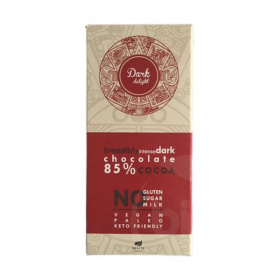 Étcsokoládé édesítőszerekkel. Gluténmentes, tejmentes, paleo, vegán, ketogén diétába beilleszthető. Hozzáadott cukrot nem tartalmaz. Természetes módon előforduló cukrot tartalmaz.
