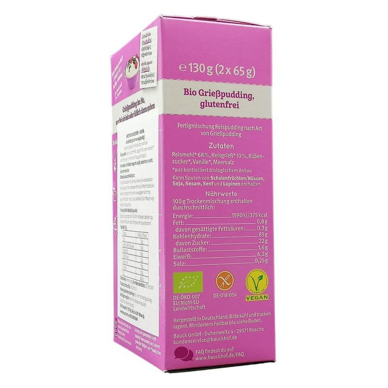 Bio grízpuding Bourbon vaníliával. Dupla adag, gluténmentes termék.