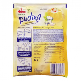 Haas gluténmentes puding vanília natural gluténmentes, természetes karotin színezék és természetes vanília aroma felhasználásával.