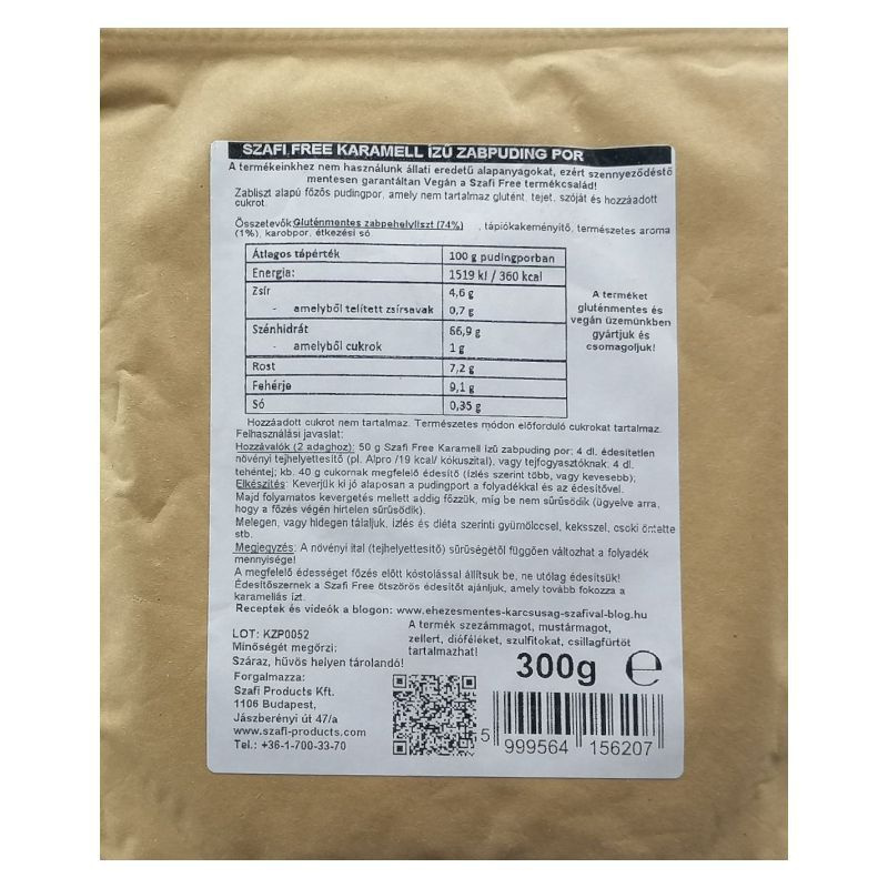 A növényi ital (tejhelyettesítő) sűrűségétől függően változhat a folyadék mennyisége! A megfelelő édességet főzés előtt kóstolással állítsuk be, ne utólag édesítsük! Édesítőszernek a Szafi Free ötszörös édesítőt ajánljuk, amely tovább fokozza a karamellás ízt. A termék szezámmagot, mustármagot, zellert, dióféléket, szulfitokat, csillagfürtöt tartalmazhat!