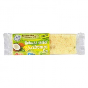 A gluténmentes édesség kókuszreszeléket és természetes citromaromát tartalmaz, vegán változatban.