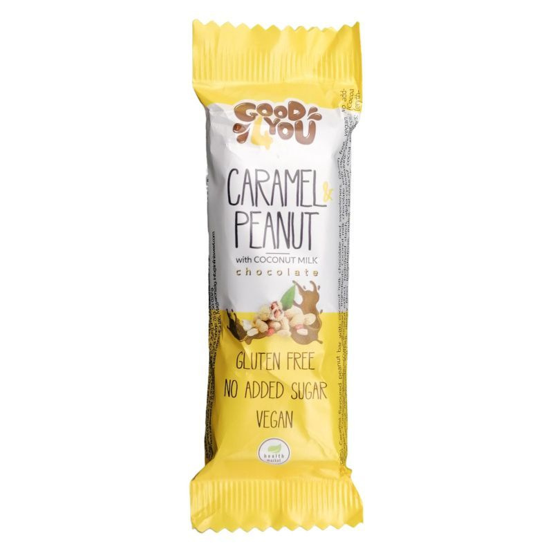 Gluténmentes, tejmentes, cukormentes, paleo, vegán, kókuszolajjal készült karamell ízű földimogyorós szelet.