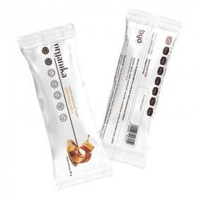 A szelet sós karamellás ízesítéssel, rostban gazdag, gluténmentes és vegán összetevőkkel készül.