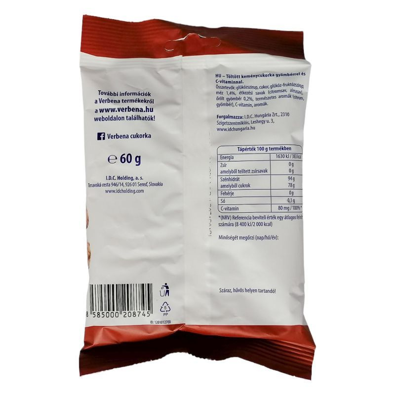 Töltött keménycukorka mézzel, gyömbérrel és C-vitaminnal.