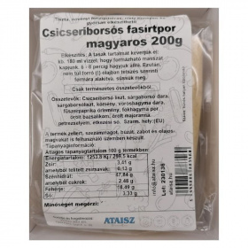 Összetevők: csicseriborsó liszt, sárgaborsó dara, sárgaborsóliszt, kömény, vöröshagyma dara, fűszerpaprika őrlemény, fokhagyma por, őrölt bazsalikom, őrölt majoranna, petrezselyem, étkezési só.