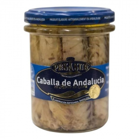A termék darabolt makréla filét és extra szűz olívaolajat tartalmaz, természetes fehérje- és omega-3-forrás.