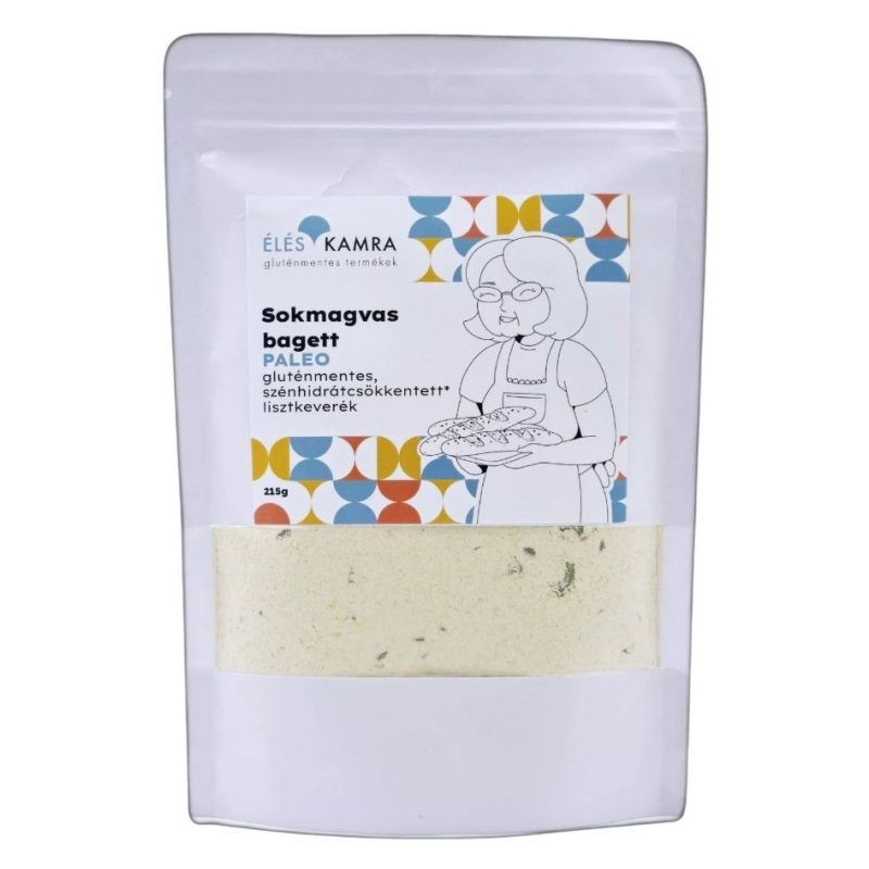 Alacsony szénhidrát tartalom (40 g alatt) Magas rosttartalom. Magas fehérjetartalom. A lisztkeverék négy darab, egyenként kb. 14 cm-es bagett elkészítéséhez elegendő. Egymáshoz leginkább illeszkedő paleo lisztfajtákból, melyek állagra és ízre kiegészítik egymást, ez által nagyon finom, kiegyensúlyozott ízvilágú pékáru készíthető belőle. Megtévesztésig hasonlít a gabonalisztekből készült teljeskiőrlésű pékáruk ízére és állagára. Kinézetre is hagyományos érzetű. Egyik paleos liszt ízkaraktere sem jelentkezik a bagettekben. Azoknak készítettük, akiknek hiányzik a teljeskiőrlésű pékárú ízvilága, állaga. Akik szeretik a finom roppanós magokat a lágy kenyértésztában és akik kifejeztetten szendvics alapot hiányolnak, mert jól jönne valami utazáshoz, munkába vagy a gyerekeknek iskolába csomagolni. Az ízekre és állagokra finnyásak is garantáltan megeszik. Teszteltük. Semmi "paleos"íze nincs, aki kóstolta, azt hitte, hagyományos magvas bagettet eszik. Mert megvan az a finom, igazi teljes őrlésű lisztekre emlékeztető ízvilága, így nem paleosok is szívesen fogyasztották. A nyers tészta sűrűbb, formázható állagú, ezért bátran használhatod a képen látható bagett sütőformában is, mert nem folyik le róla a tészta. Mint ahogy tőlünk megszokhattad, nagyon egyszerű elkészíteni és az adag kiadós, mert 4 db 14 cm-es bagett lesz belőle. Jó szívvel ajánljuk azok számára, akik a sok magliszt és tojás ízű kenyér után vágynak a naturális ízvilágra és paleo előtt leginkább a barna kenyereket kedvelték. Jó választás kezdő paleosoknak, családtagot átszoktatni. A bagettek elkészítéséhez csak nedves hozzávalók szükségesek, a tasak minden más szükséges alapanyagot tartalmaz. Kedvező rost-szénhidrát összetétele miatt diétázók, fogyókúrázók is bátran fogyaszthatják, ha büntetlen kenyérfogyasztásra vágynak. Rendkívül alacsony szénhidrát tartalmú lisztkeverék (40 g alatt) Készíthető belőle hidegszendvics, "panini" melegszendvics, fogyasztható készételek, saláták mellé egyaránt. Fagyasztóban hosszú ideig tárolható és szobahőmérsékleten érdemes kiolvasztani. Hűtőben 4-5 napig eltartható. A keverékben a finomabb ízvilág elérése érdekében a szúrós ízű szódabikarbóna helyett a saját fejlesztésű paleolit éléskamra foszfátmentes sütőport használjuk. Hozzáadott adalékoktól, színezékektől, konzerváló szerektől, aromáktól, ízfokozóktól mentes, csak természetes alapanyagok felhasználásával előállított termék. Gabona-, cukor-, szója-, tejmentes magyar kézműves lisztkeverék. Nem tartalmaz továbbá konjac lisztet, kókuszlisztet és élesztőt. Jó szívvel ajánljuk diétázóknak, paleolit életmód híveinek, azoknak, akik szem előtt tartják az egyszerű, de változatos reform táplálkozást. Elkészítési javaslat: 3 db M-es tojást (kb. 165 g) keverj el 100 ml vízzel és 20 ml friss citromlével. Néhány perc alatt keverd simára a lisztkeverékkel. 20 perc pihentetés után vizes kézzel formázz 4 db, egyenként 14 cm hosszú bagettet. Tedd szilikonos lapra vagy bagett sütő formára és süsd 200 fokra előmelegített (alsó-felső fokozatú) sütőben 20 percet, majd 180 °C-on még 20 percet. Kihűlve fogyasztandó. teljeskiőrlésű pékárura emlékeztető állagú és ízű, ropogós héjú, száraz belsejű bagettek. Csak természetesen előforduló cukrokat és rostokat tartalmaz. Szezámmagot és dióféléket felhasználó üzemben készült. Száraz, hűvös helyen tartandó.