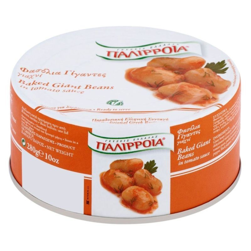 A konzerv fehérbabot, paradicsomszószt és mediterrán fűszereket tartalmaz, hagyományos görög recept alapján.