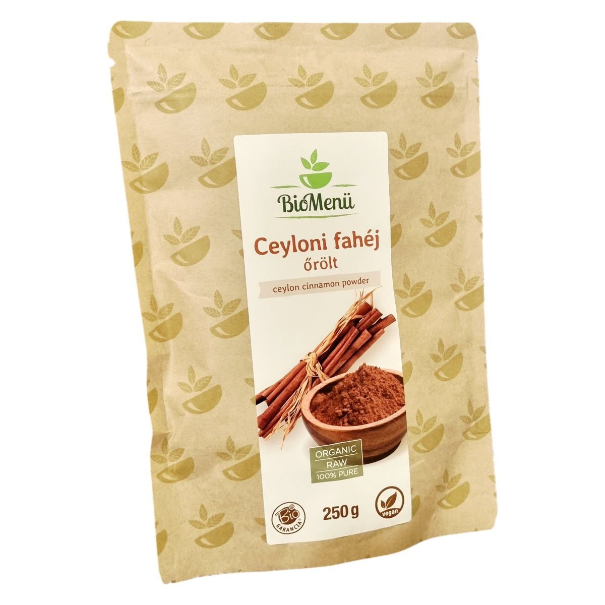 A BioMenü Ceyloni fahéj Sri Lankáról származik, ahol kiváló minőségű, bio termesztésből származó fahéjat állítanak elő. A termék 250 grammos kiszerelésben érhető el, mely 166 adagot tartalmaz. A csomagolás veganbarát, és garantáltan tiszta, 100%-ban természetes, bio alapanyagból készült. A termék nem EU mezőgazdaságból származik, és a HU-ÖKO-02 tanúsítvány igazolja minőségét. A fahéj őrölt formában kerül forgalomba, így könnyen adagolható bármilyen ételhez vagy italhoz. Mint természetes fűszer, a fahéj jellegzetes aromáján kívül a rosttartalma is kiemelkedő. A tárolásnál fontos a száraz, hűvös és fénytől védett hely választása a minőség megőrzése érdekében.