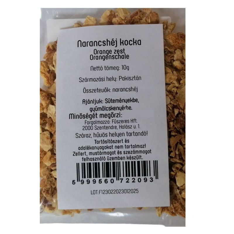 A narancs külső, vékony rétegben lehámozott sárga héja, amelyet sokféle célra használnak. Az édesiparban és a háztartásokban is gyakran alkalmazott, enyhén keser-nyés, kellemes narancs illatú, kedvelt fűszer, amelyet különféle süteményekbe, poharas krémekbe, italokba tesznek. Használat: sütemények, krémek, italok ízesítője. Tartósítószert és adalékanyagokat nem tartalmaz! Nettó tömeg: 10 g.