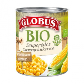 Bio morzsolt csemegekukorica, vákuumzárású. Adalékanyagok nélkül, hozzáadott cukrot nem tartalmaz, a termék természetes módon előforduló cukrokat tartalmaz.