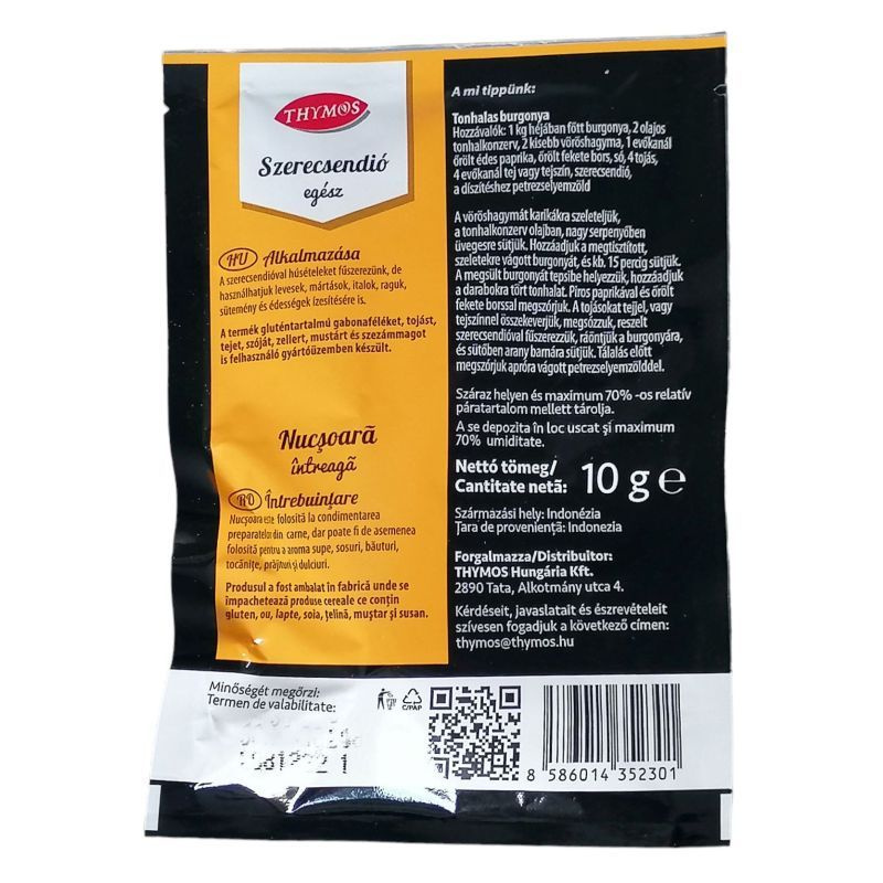 Ez a fűszer a szerecsendiófa magjából készül, amely Délkelet-Ázsiából származik. Az érett magokat szárítják, majd finom porrá őrlik. Az íze édes és fűszeres, ami különösen jól érvényesül süteményekben, forralt borban és puncsokban. De nemcsak édes ételekhez, hanem húsételekhez és mártásokhoz is bátran használható, hogy egyedi ízélményt nyújtson. A szerecsendió aromája sokak számára nosztalgikus érzéseket kelt, hiszen szorosan összefonódik a karácsonyi hagyományokkal.