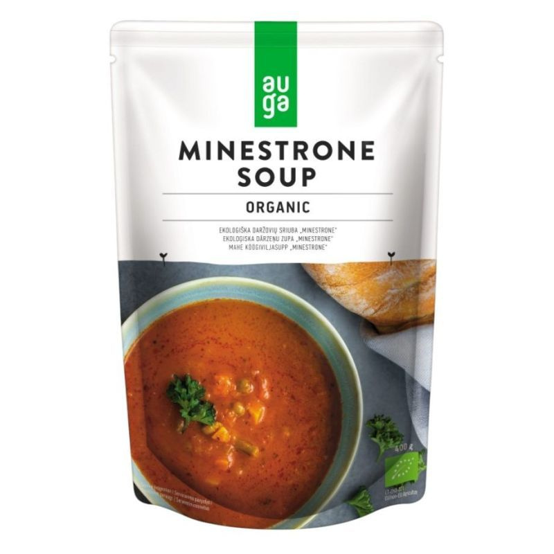 Összetevők: víz, bio zöldségek* (sárgarépa, fejeskáposzta, burgonya, zöldbab, zöldborsó, édes paprika) 36%, bio paradicsompüré*, bio repceolaj*, bio fűszerek*, bio cukor*, tengeri só, bio rizsliszt*. *= az összetevők ökológiai gazdaságból származnak.