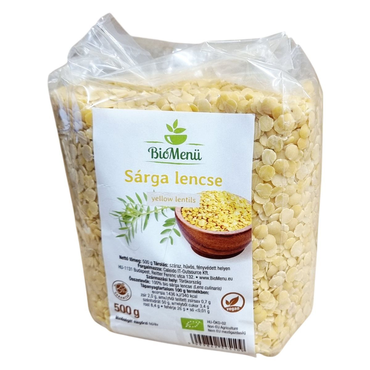 A sárga lencse Törökországból származik, és kizárólag nem EU mezőgazdaságból származó, bio minőségű alapanyagból készül. A termék nettó tömege 500 gramm, és a csomagoláson a minőségmegőrzési idő szerepel. A termék a Bio GARANCIA jelöléssel rendelkezik, és a csomagolásán megtalálható a vonalkód és a gyártási tételazonosító (LOT25702).