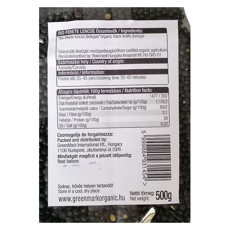 Összetevők: bio fekete beluga lencse.