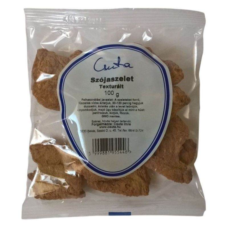 A Csuta texturált szójaszelet egy kiváló alternatíva a húsmentes étrendet követők számára, amely gazdag fehérjében és tápanyagokban. Ez a termék a szójabab feldolgozásával készült, így nemcsak ízletes, hanem tápláló is. A texturált szójaszelet különleges állagának köszönhetően remekül helyettesíti a húst különböző ételekben, legyen szó pörköltről, levesről vagy akár töltött ételekről. A szójaszelet könnyen magába szívja a fűszerek és ízek gazdagságát, így bármilyen ételhez remekül illeszkedik. A termék 100 grammos kiszerelésben kapható, ami ideális választás a kisebb adagok kedvelőinek, vagy azoknak, akik szeretnék kipróbálni a szójaszeletet anélkül, hogy nagyobb mennyiséget vásárolnának.