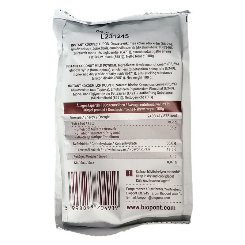 Összetevők: kókuszpor, maltodextrin, emulgeáló szer (napraforgó lecitin).