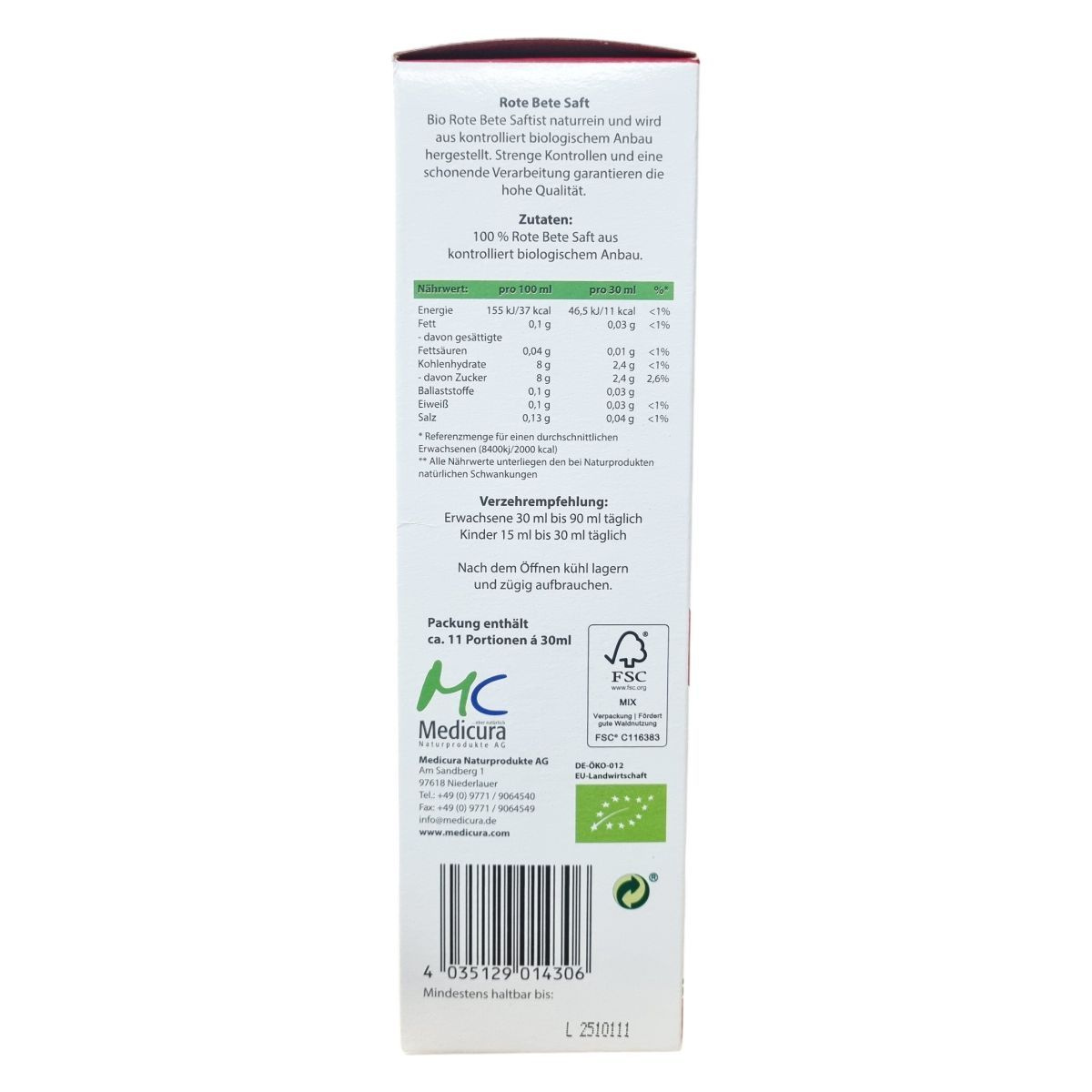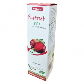 A Medicura bio céklalé természetes és tiszta levet biztosít, melyet ellenőrzött, szigorúan szabályozott organikus termesztésből származó céklából sajtolnak ki. A termék kíméletes feldolgozással készül, hogy megőrizze tápanyagtartalmát és frissességét. A 330 ml-es kiszerelés körülbelül 11 adag 30 ml-es egységből áll, így könnyen adagolható. A csomagolás FSC minősítéssel rendelkezik, támogatva a fenntartható erdőgazdálkodást. Ez a lé tökéletes választás azok számára, akik természetes módon szeretnék egészségüket támogatni, miközben bio és vegán terméket keresnek.
