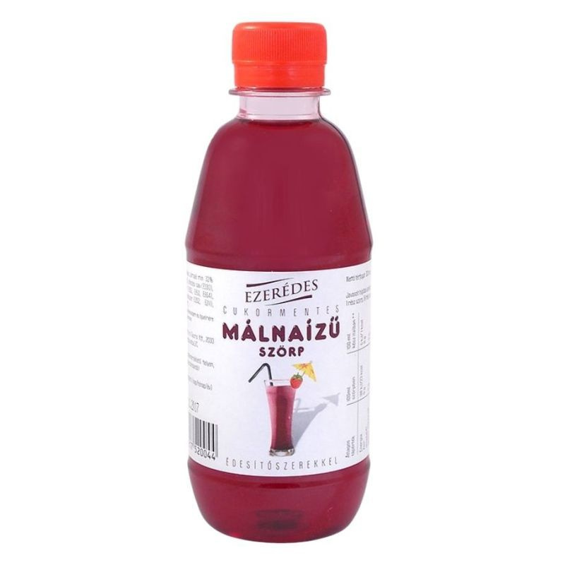 A szörp édesítőszerekkel készült, málna kivonatot tartalmaz, hozzáadott cukrot nem tartalmaz.