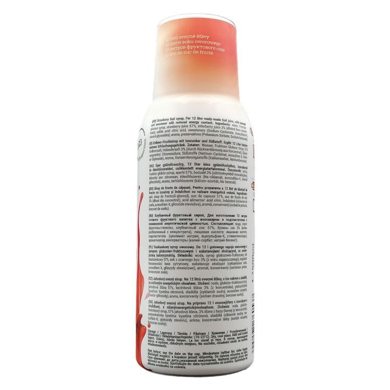 Eper rajongók figyelem! Epres gyümölcsszörpünk kötelező tartozéka a családi konyhának! Fogyassza az illatos, zamatos gyümölcsöt a kedvenc szörp formájában, vagy fedezze fel az intenzív eperízt egyéb édességek felhasználásánál! Összetevők: fruktóz-glükóz szirup, víz, eperlé 50% (sűrítményből visszahígítva), étkezési sav: citromsav, édesítőszerek (Na-ciklamát, aceszulfám-K, steviol glikozidok), bodzalé, aroma, tartósítószerek (kálium-szorbát, Na-benzoát).
