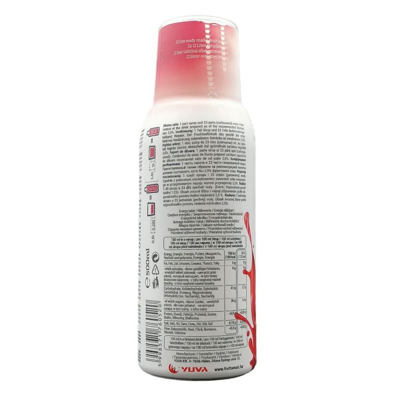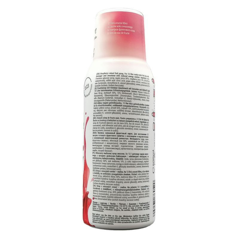 Málna gyümölcsszörp. 12 liter kész gyümölcsitalhoz, izocukorral és édesítőszerrel, csökkentett energiatartalommal.