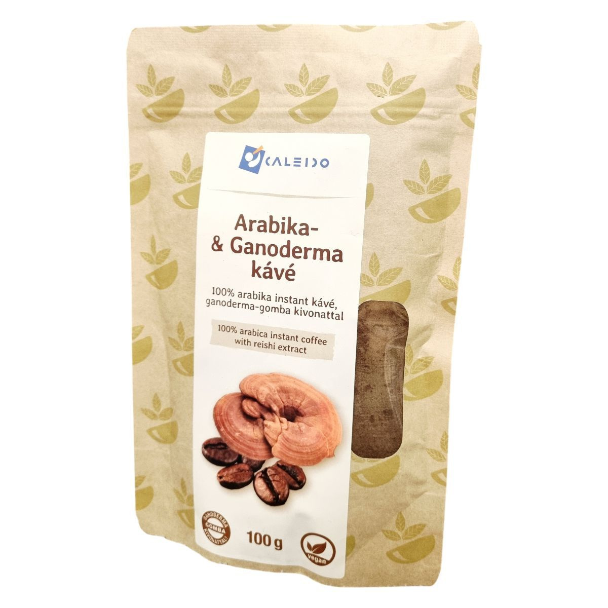 A Caleido Arabika- és Ganoderma kávé egy különleges instant kávéital, amely a prémium 100% arabika kávé mellett ganoderma lucidum gomba kivonatát tartalmazza, amely jelentős poliszacharid tartalommal rendelkezik. A termék 100 gramm kiszerelésben érhető el, származási helye az Európai Unió. Ez a kávé vegán étrend mellett is fogyasztható, koffeintartalma miatt azonban bizonyos csoportok számára nem ajánlott. A termék tárolása egyszerű, szobahőmérsékleten, fénytől és nedvességtől védve javasolt. Mivel természetes alapanyagokból készül, tápértéke a környezeti feltételektől és az eltelt időtől függően változhat.