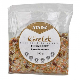 Összetevő: rizs , bulgur, vöröslencse, paradicsom pehely, szárított zöldségek keveréke (sárgarépa, fehérrépa, petrezselyemlevél és gyökér).