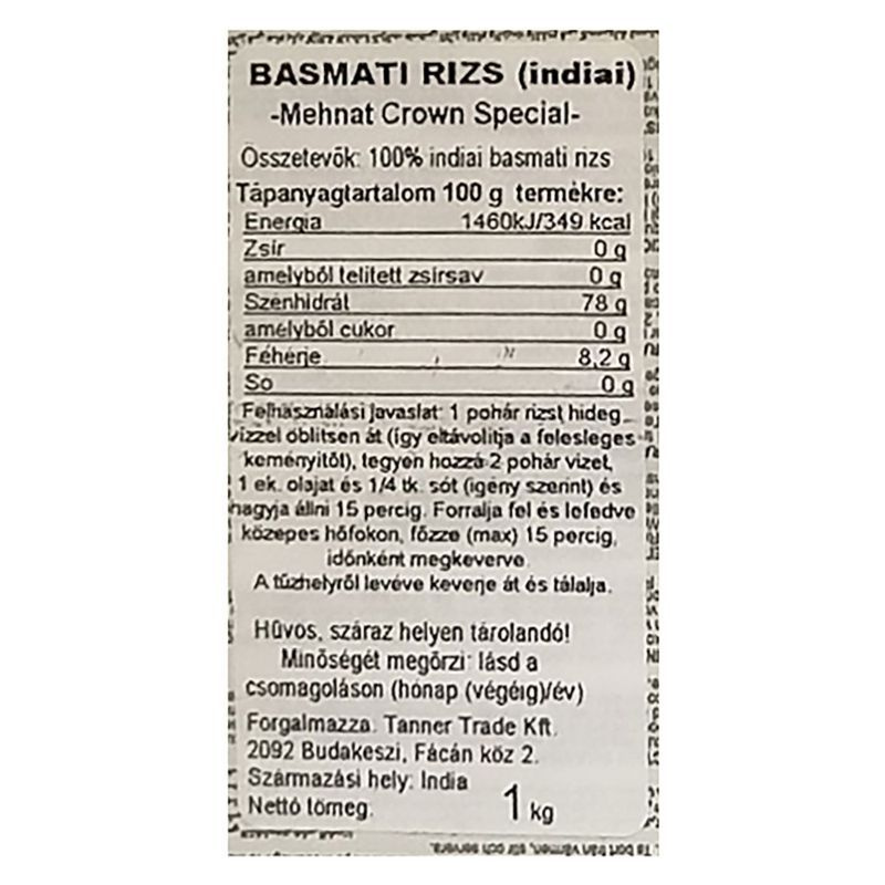 Összetevők: 100% indiai basmati rizs.