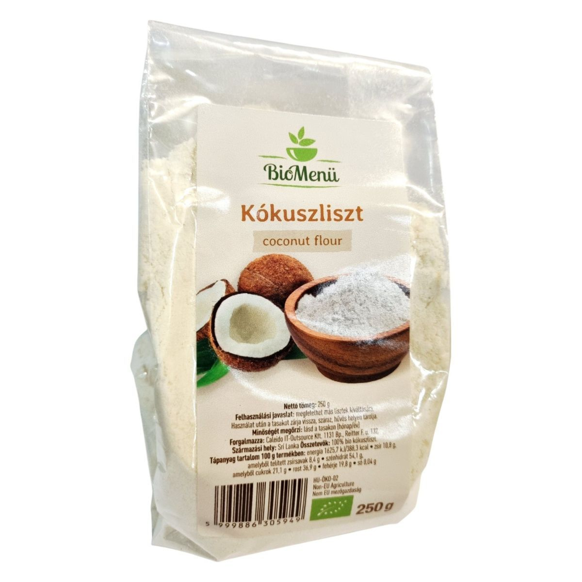 A BioMenü Kókuszliszt egy 100% bio kókuszliszt, amely kiválóan alkalmas más lisztek helyettesítésére. Származási helye Sri Lanka, és a termék bio minősítéssel rendelkezik.