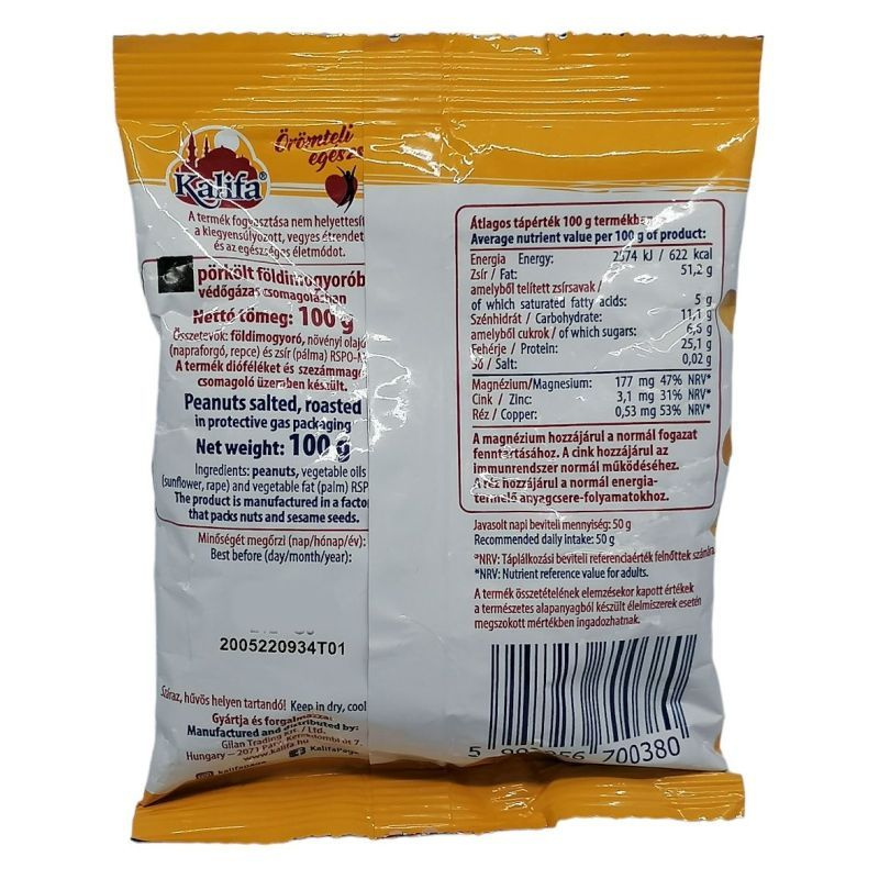A Kalifa sótlan mogyoró egy ízletes és tápláló snack, amely a földimogyoró természetes ízét és tápanyagait kínálja. A mogyoró gazdag forrása az egészséges zsíroknak, különösen az egyszeresen telítetlen zsírsavaknak, amelyek hozzájárulhatnak a szív- és érrendszeri egészség megőrzéséhez. Ezen kívül a földimogyoró jelentős mennyiségben tartalmaz A-, E- és C-vitamint, valamint ásványi anyagokat, mint például kalciumot és nátriumot. A sótlan változat különösen kedvező azok számára, akik figyelnek a sóbevitelükre, vagy akik szeretnék elkerülni a felesleges adalékanyagokat. A Kalifa sótlan mogyoró nemcsak finom, hanem tápláló is, így ideális választás lehet a mindennapi étrendbe való beillesztéshez. A mogyoró ropogós állaga és gazdag íze miatt tökéletes snack lehet munka közben, sportolás után, vagy akár egy baráti összejövetelen is. A természetes íz és a sómentesség miatt a mogyoró remekül illeszkedik különböző diétákba, beleértve a vegetáriánus és vegán étrendet is.