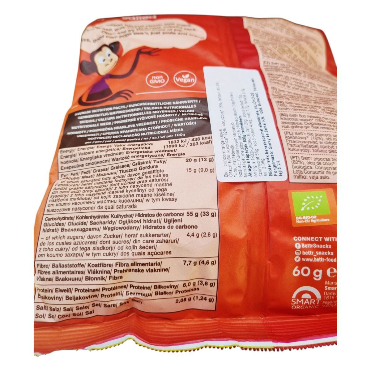 A bett'r Popcorn egy ízletes és egészségtudatos választás azok számára, akik szeretik a sós rágcsálnivalókat. A termék bio minősítéssel rendelkezik, és vegán étrendbe is beilleszthető. A popcorn kókuszolajjal készül, amely hozzájárulhat a termék különleges ízvilágához. A csomagolás színes és vidám, így bármikor szívesen nyúlsz majd érte. A termék nem tartalmaz GMO összetevőket, így bűntudat nélkül élvezheted. A popcorn energiatartalma 1832 kJ / 438 kcal 100 grammonként, így ideális választás lehet egy könnyed nassoláshoz.
