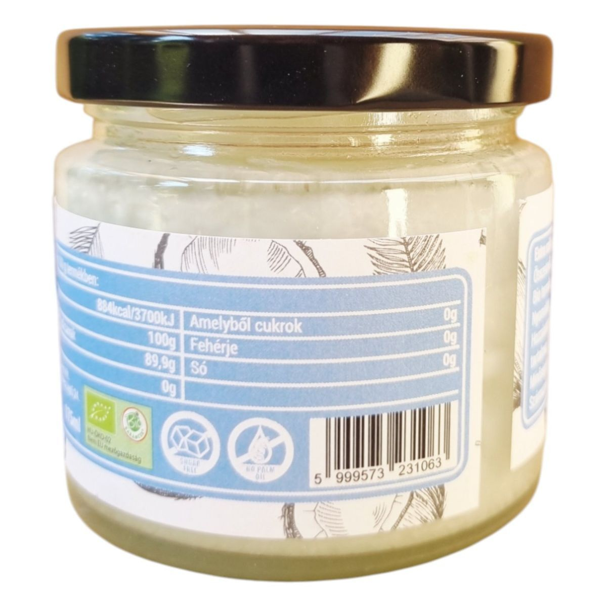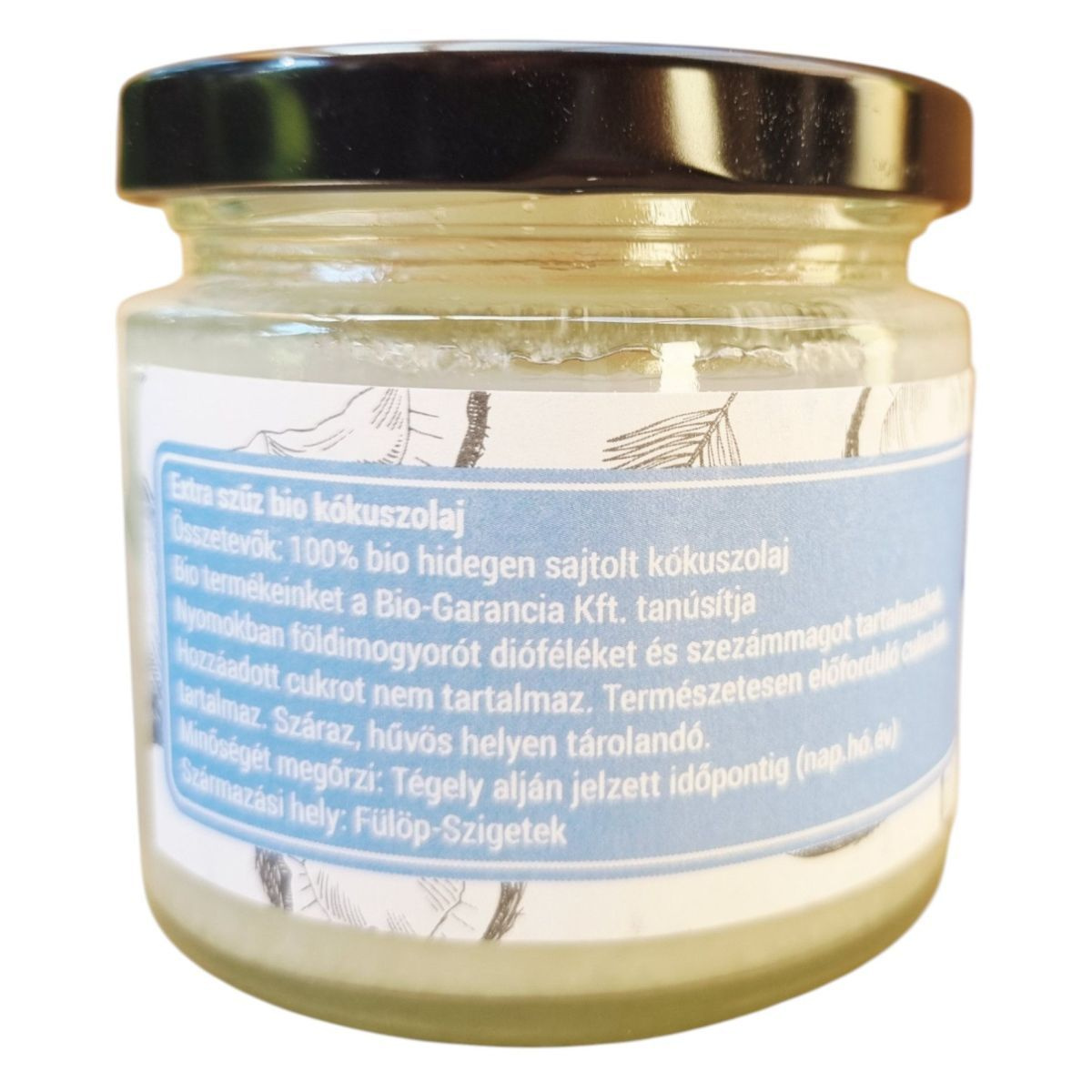 Az Extra Virgin Bio Coconut Oil egy prémium minőségű kókuszolaj, amelyet a Fülöp-szigeteken állítanak elő. A termék 100% természetes és bio minősítéssel rendelkezik, amit a Bio-Garancia Kft. tanúsít. A kókuszolaj hidegen sajtolt, így megőrizheti a kókusz természetes ízét és tápanyagait. A termék nem tartalmaz hozzáadott cukrot, csak természetesen előforduló cukrokat. Ideális választás lehet azok számára, akik egészségtudatos életmódot követnek, és szeretnék elkerülni a mesterséges adalékanyagokat. A termék nyomokban tartalmazhat földimogyorót, dióféléket és szezámmagot, ezért allergiások számára körültekintést igényelhet.