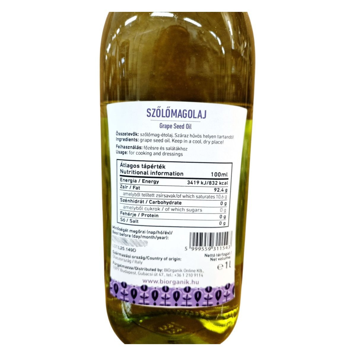 A Naturmind szőlőmagolaj egy 1000 ml-es kiszerelésű, vegán termék, amelyet főzéshez és salátákhoz ajánlanak. Az olaj összetevője kizárólag szőlőmag-étolaj, amelyet száraz, hűvös helyen kell tárolni. Az olaj energia- és tápértéke 100 ml-re vetítve 3419 kJ/832 kcal, 92,4 g zsír, amelyből 10,6 g telített zsírsav, 0 g szénhidrát, 0 g cukor, 0 g fehérje és 0 g só. A termék Olaszországból származik, és a BioGanik Online Kft. forgalmazza.