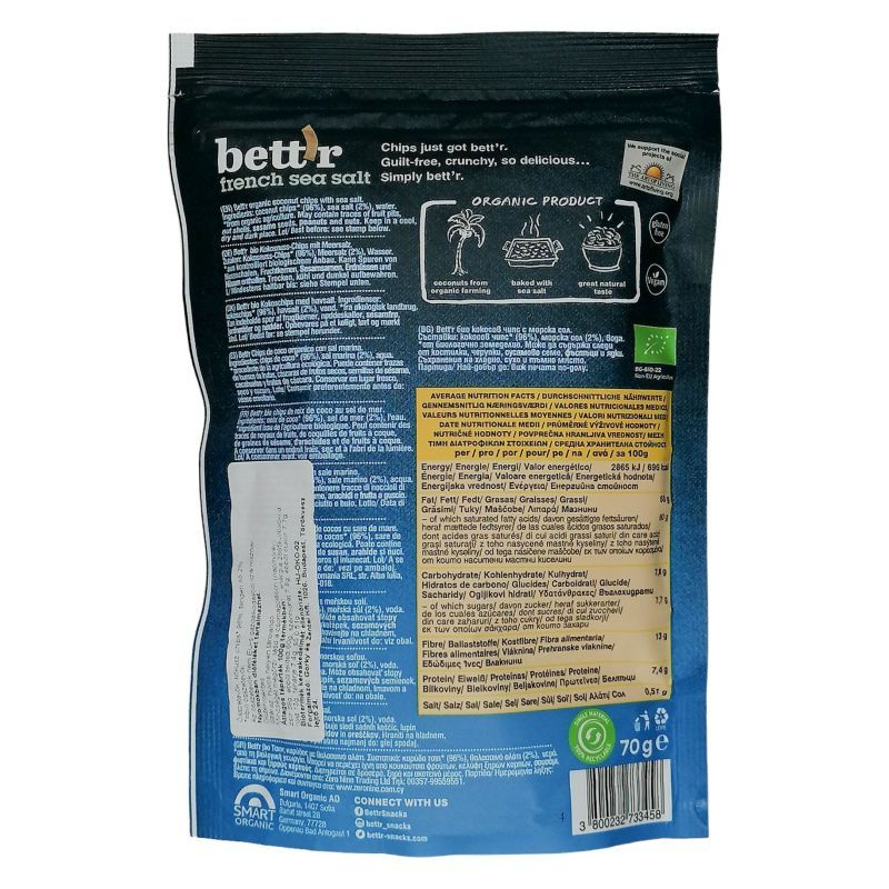 Összetevők: Kókuszchips* (99%), tengeri só (1%). *összetevők biogazdálkodásból.