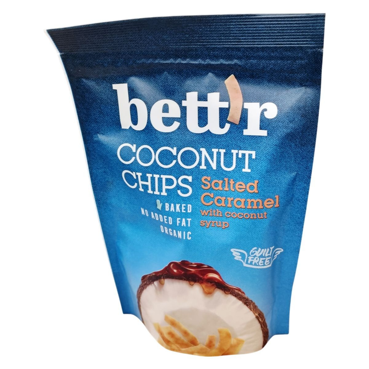 A bett'r salted caramel Coconut Chips organikus gazdálkodásból származó kókuszdióból készülnek, amelyeket kókuszcukorral és kókusz sziruppal, valamint tengeri sóval ízesítenek. A termék hozzáadott zsiradék nélkül, sütéssel készül, így egészséges választás azok számára, akik természetes, ropogós snackre vágynak. Különös figyelmet fordítanak az allergénekre, ezért előfordulhatnak természetes eredetű nyomok, például gyümölcsmagok, dióhéjak, szezámmag, földimogyoró és egyéb diófélék. Gluténmentes és vegán termék, amely kiváló alternatíva a hagyományos chipset és édességeket kedvelők számára. A termék megfelelő tárolása biztosítja a frissességet és az ízmegőrzést. Importőr: Smart Organic Ltd, London.