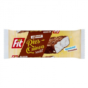 Puffasztott rizs-quinoa szelet tejcsokoládé bevonatban.