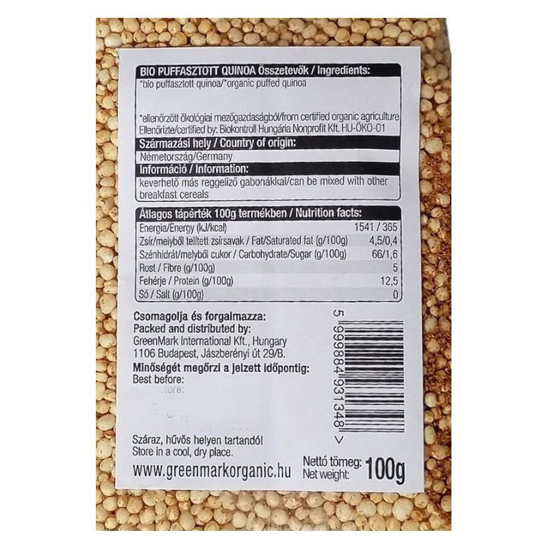 Összetevők: puffasztott quinoa.